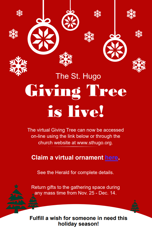 The Catholic Community of St. Hugo of the Hills Parish will continue to evangelize and proclaim the Good News that Jesus Christ is Lord. We go forth as a sacramental parish in faith, hope and love, to serve the family of God, and to grow in our faith.