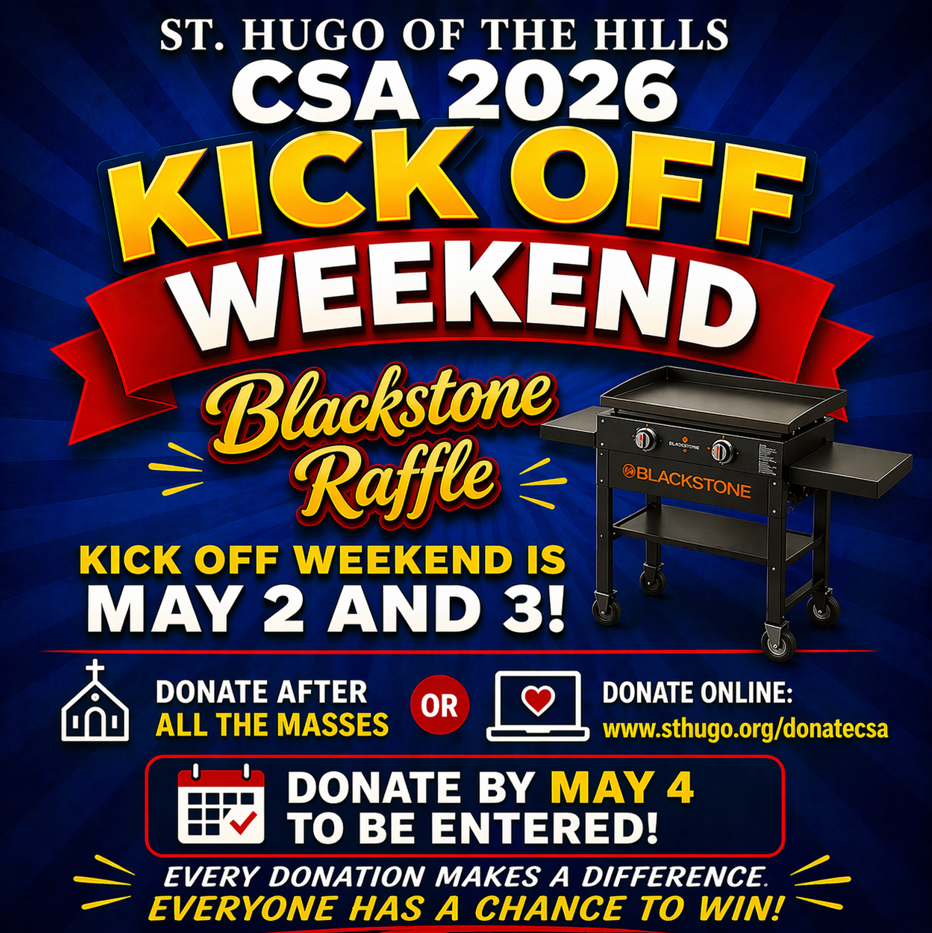 The Catholic Community of St. Hugo of the Hills Parish will continue to evangelize and proclaim the Good News that Jesus Christ is Lord. We go forth as a sacramental parish in faith, hope and love, to serve the family of God, and to grow in our faith.
